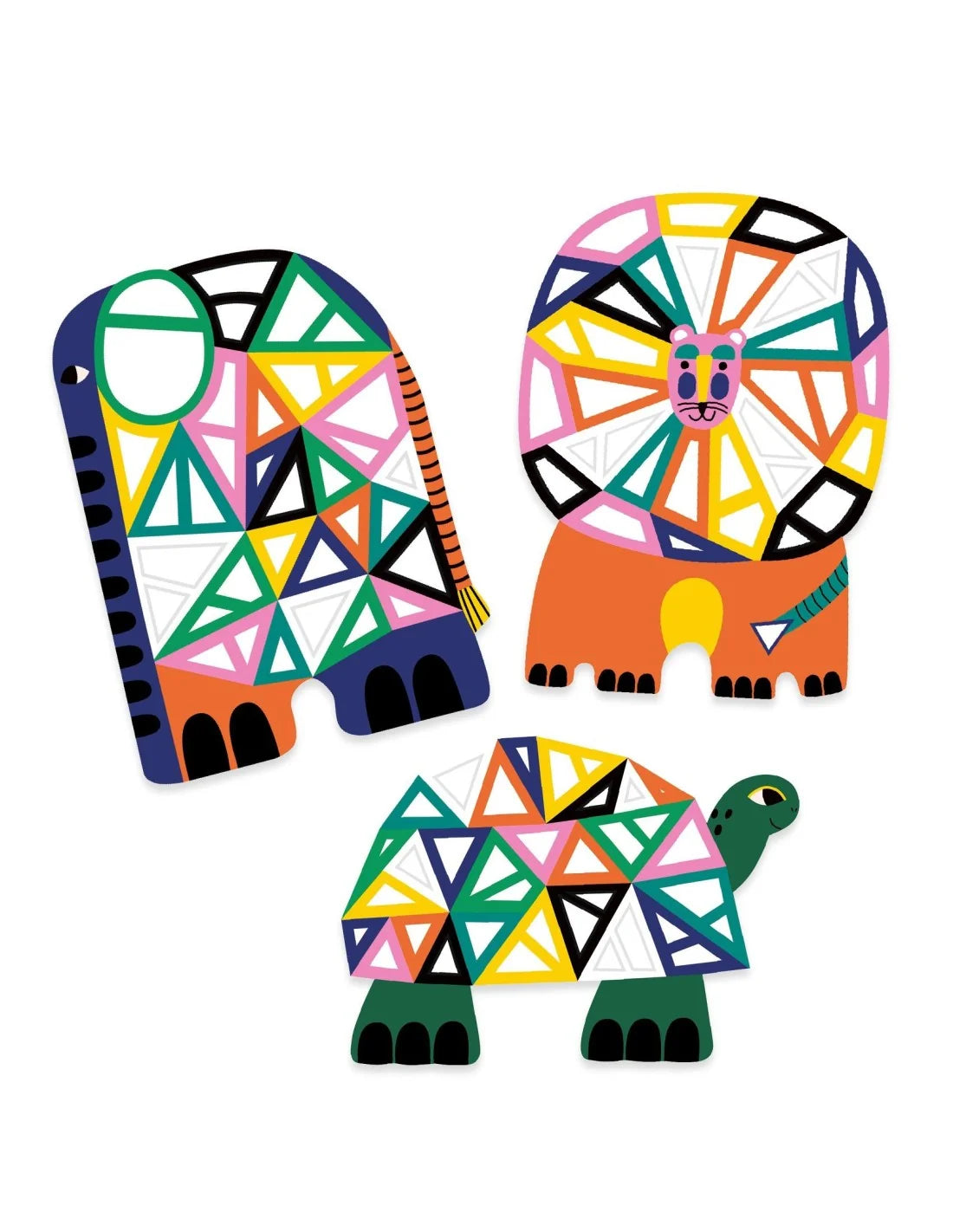 Drie dieren uit de savanne om te versieren met dikke, verplaatsbare mozaïeken om ze levendige kleuren te geven!