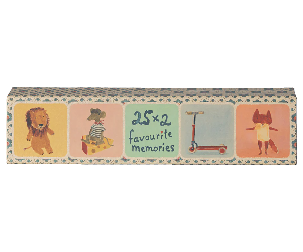 Een klassiek memoryspel met 25 verschillende illustraties getekend door Dorthe Mailil. De inspiratie komt van verschillende producten die door de jaren heen zijn geproduceerd. Het spel bevat 50 kaarten (25 sets).