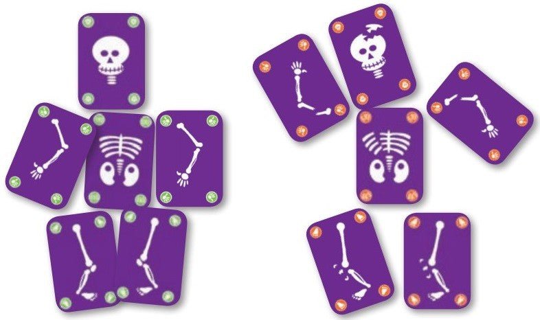 • inhoud: 30 skeletkaarten, 12 gebroken skeletkaarten en 2 jokerkaarten.