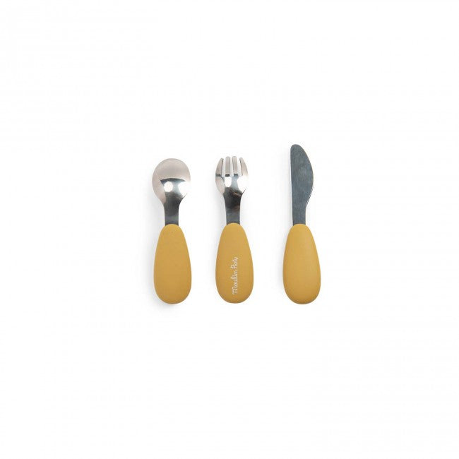 Dit gemakkelijk te hanteren roestvrijstalen en siliconen bestek zal peuters helpen met hun eerste grote maaltijden