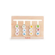 Een dubbelzijdig spel van observeren en snelheid voor de lol met 36 uitdagingskaarten! Bekijk de getrokken kaart aandachtig en reproduceer de reeksen door de houten knoppen zo snel mogelijk naar de gekozen kant (kleuren of afbeeldingen) te schuiven.