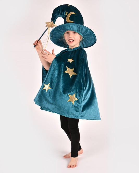 Dengodafen gouden paillettencape incl haarband en staf 104 tm 128 cm