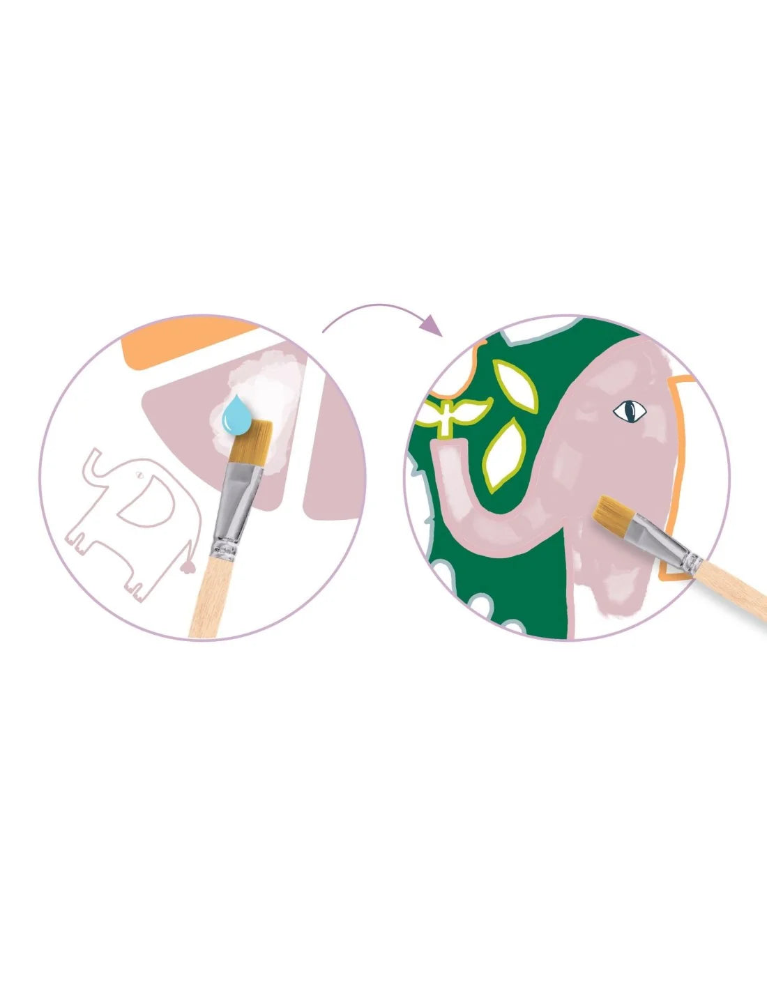 Kleine kunstenaars ontdekken schilderen op een leuke en leeftijdsgerichte manier. Dankzij de paletten die direct op de vellen zijn afgedrukt, kunnen ze net als volwassenen schilderen, zonder dat ze daarvoor omvangrijk en vuilmakend materiaal voor nodig hebben. Alles is ontworpen om een leuke, praktische en bevredigende ervaring te bieden!