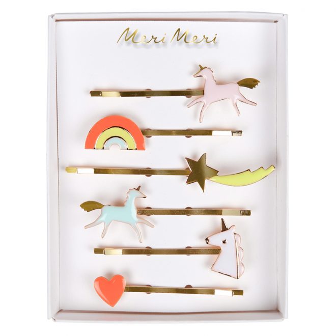 Meri meri haarspeldjes unicorn enamel 8+Sprinkle your hair with a layer of magic with these delightful hair clips decorated with shiny enamel with gold details and featuring unicorns, stars, hearts and magical rainbows.Pack of 6 hair slides