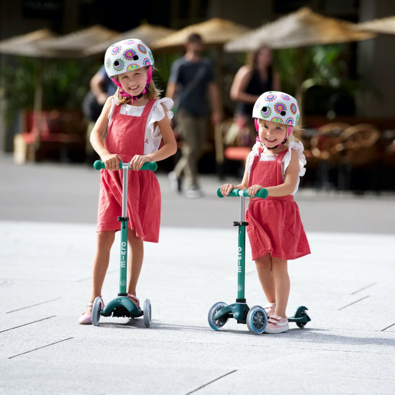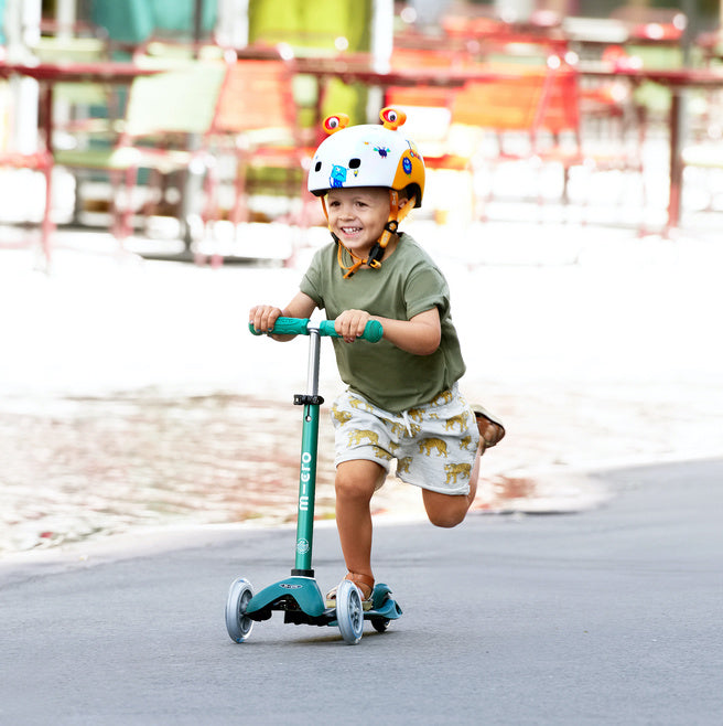 Around 10 percent of the plastic waste in the oceans comes from fishing. Every year an estimated 640,000 tonnes of nets and other equipment are left in the waters. From some of this waste, which is collected in landfills, we create our sustainable kids scooters. The footplate and brake of the Mini Micro Deluxe ECO are made from recycled fishing nets and other plastic waste. In addition, the product has the same features as the popular Mini Micro Deluxe: The Mini Micro Deluxe comes with an adjustable steering bar and an anodized T-bar in the colour of the deck. Available in many exciting colour combinations! The Mini Micro scooter is the quality scooter for young children, there is no other like it. Its unique lean-and-steer design, developed with Swiss medical experts, allows children to use their body weight to control the steering. It is very safe and stable. Kids get the feeling of surfing the sidewalk as they curve from right to left, adding an element of fun and independence that young children love. The Mini Micro scooter is lightweight (only 1.5kg), so its easy to pick up and carry when need be. Non marking wheels make it also suitable for indoor use., Winner of many international awards!
