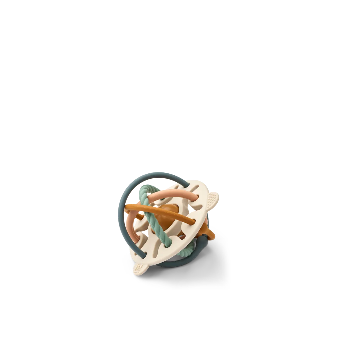 Speelse rammelaar en bijtring in de vorm van een planeet