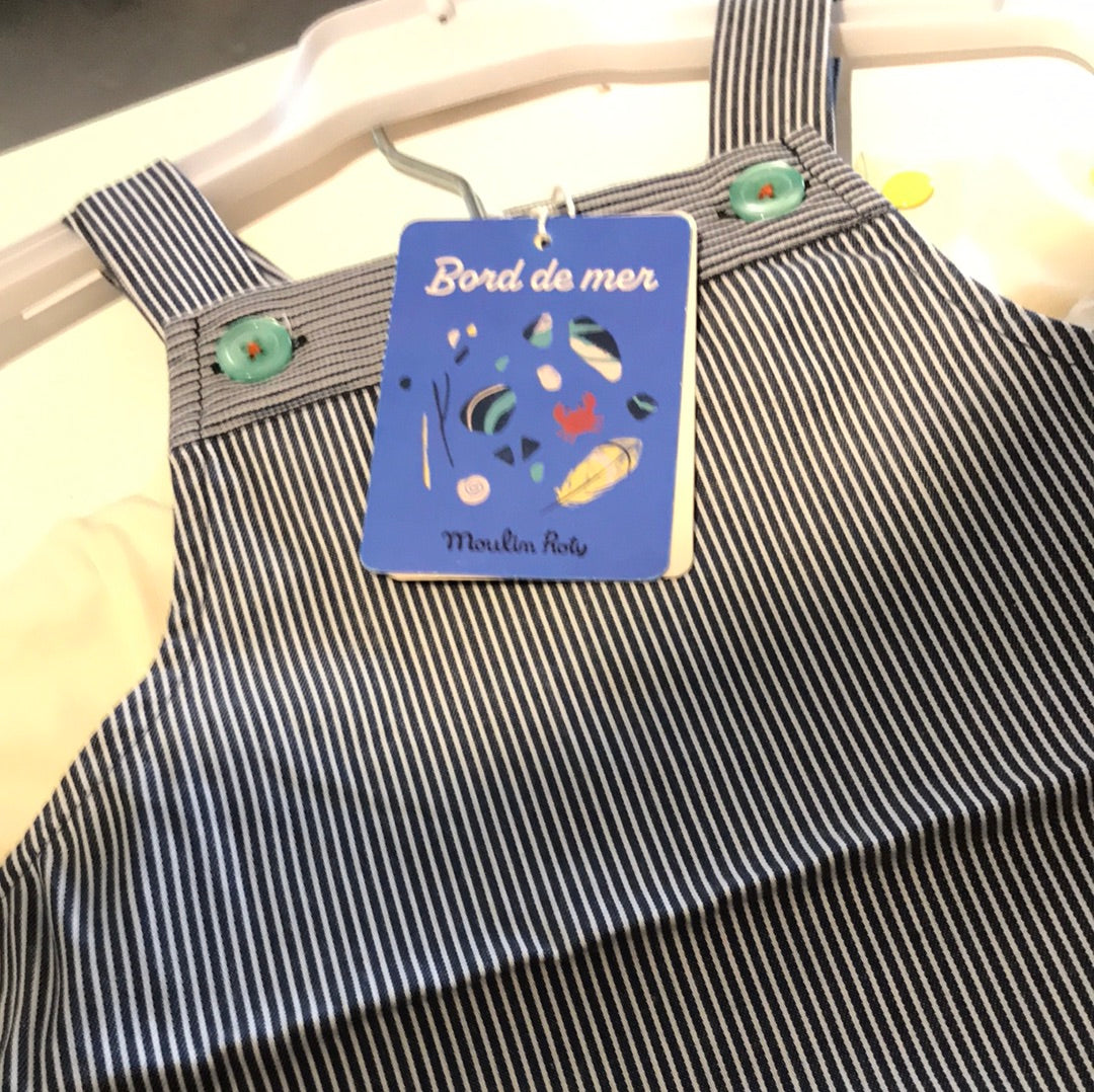 HIPPOLYTE Navy blue and white striped cotton short dungarees with adjustable straps. Press-studs between the legs and around the arms, easy to put on.