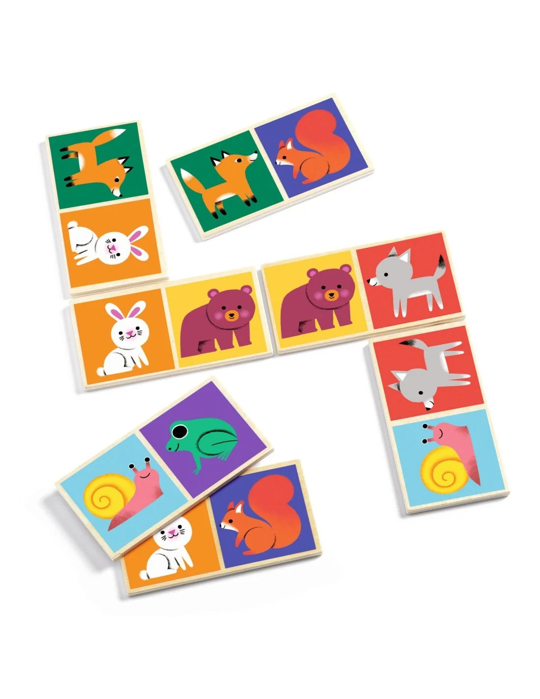 Een dominospel met als thema bosdieren. Twee speelkanten: een kant met illustraties, een kant met sterrenstelsels. Het kind combineert dieren of getallen om een logische volgorde te vormen. Een ideaal educatief spel vanaf 2 jaar om spelenderwijs te leren.