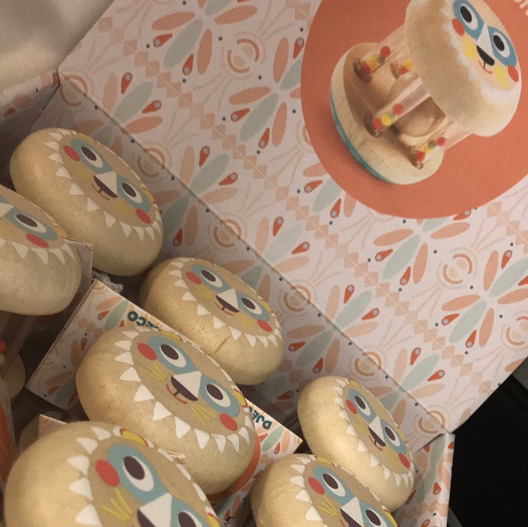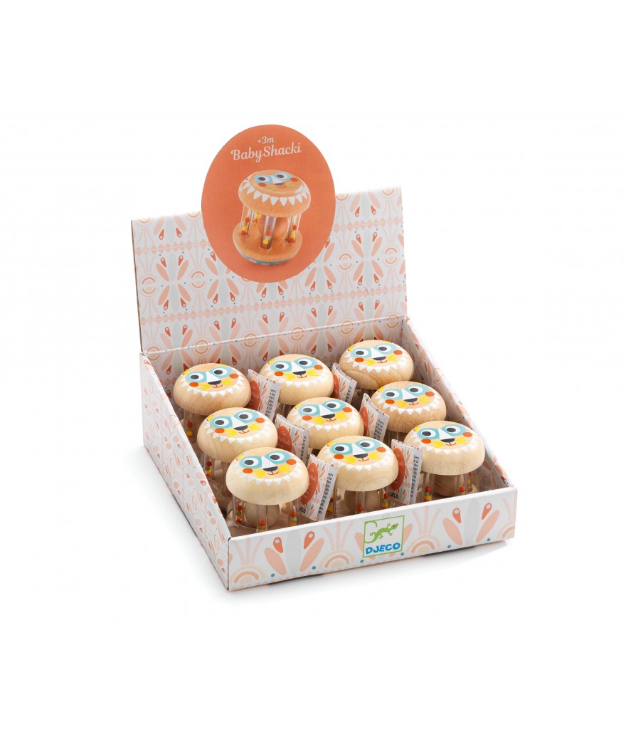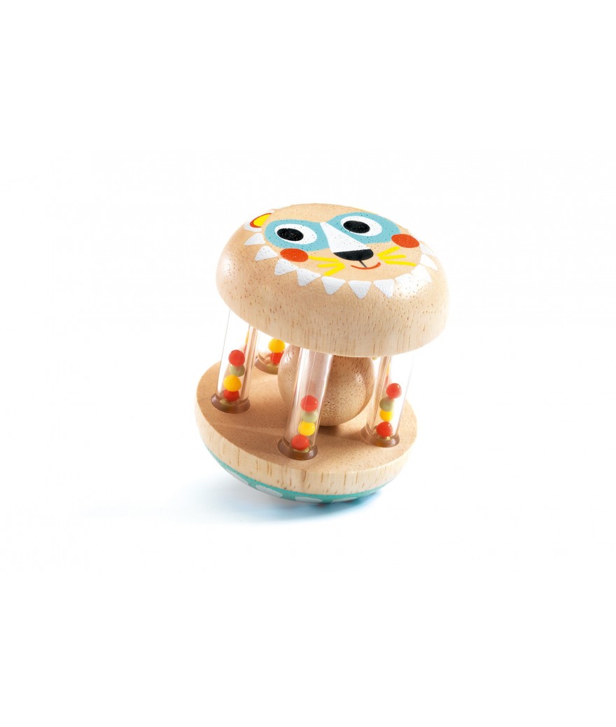 Djeco baby rammelaar hout met lieve print babyshaki