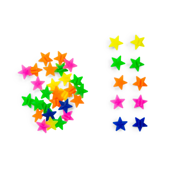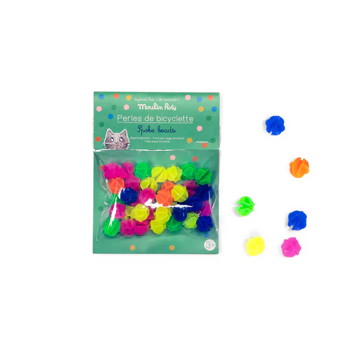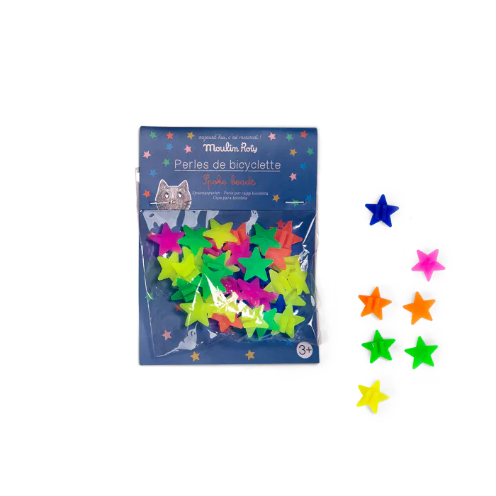 Aujourd'hui c'est mercredi zakje met 36 neon gekleurde spaakkralen voor de fiets (3 vormen beschikbaar: rond, ster en maan)